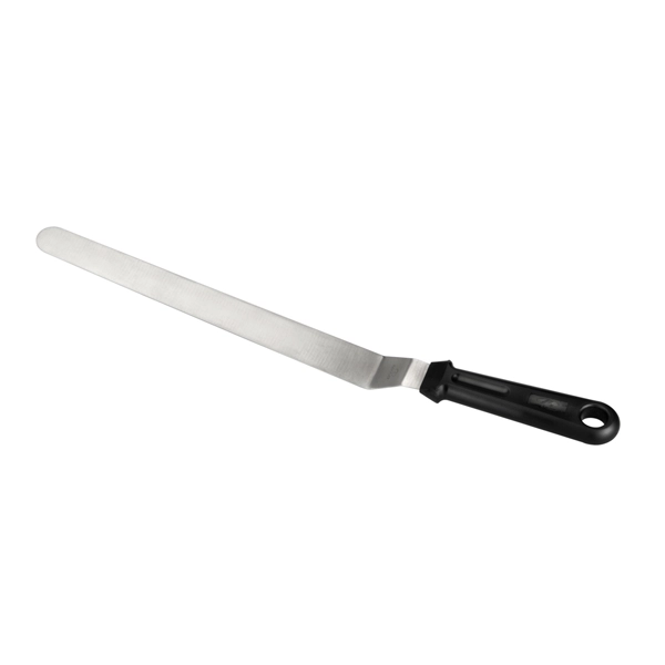 Spatula curbata din inox are o lungime de 30 cm, iar latimea lamei este de 3.2 cm si este ideala pentru manipulat alimente, precum clatitele, omleta, carnea etc.